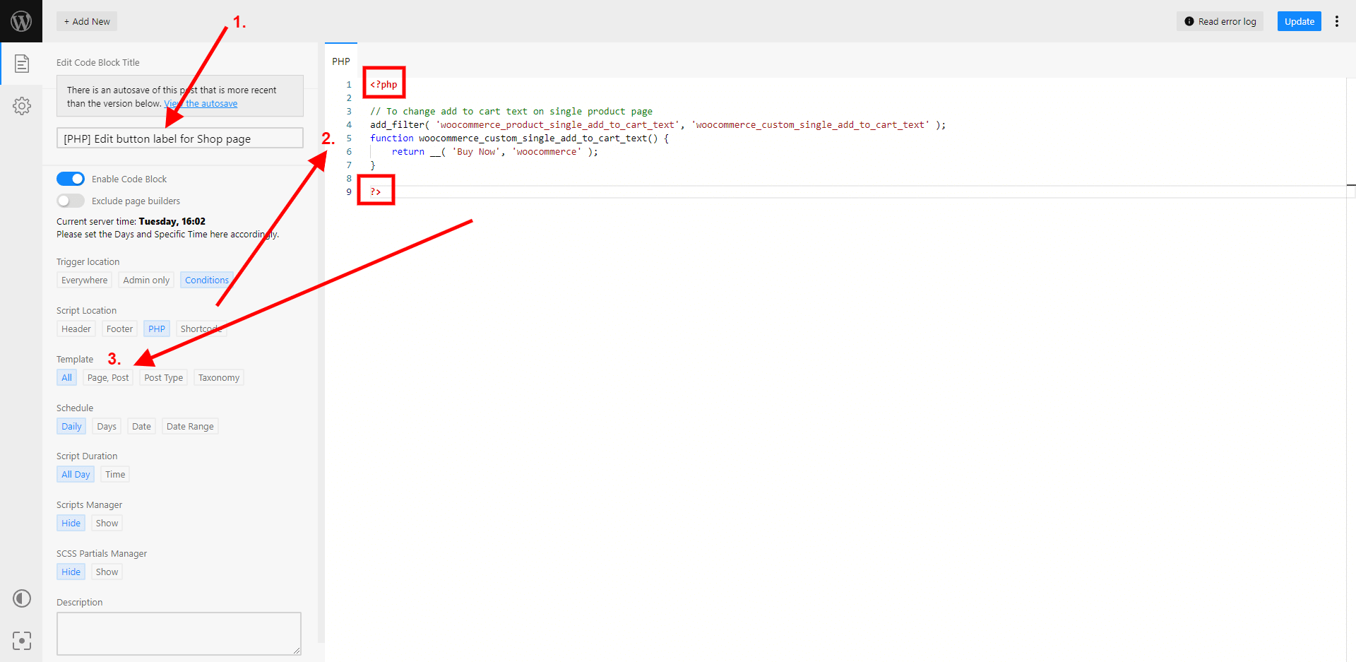 Safe Mode will be automatically activate if there is an error in your PHP code you can read through all of the error log and navigate to the Code Block editor page to fix an error.