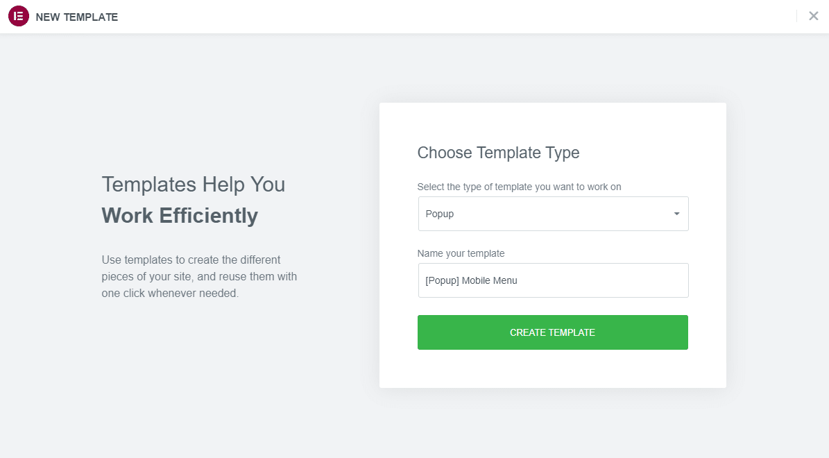 - Create an Elementor’s popup by go to the Templates > Popup from the WordPress dashboard