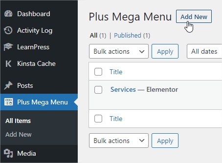 3. Create new dropdown menu inside Plus Mega Menu post type, you can use Elementor to style it