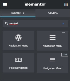 5. Go to your header and drag The Plus’s Navigation Menu widget and select the menu that you’ve created in 4.