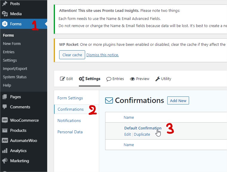 Let’s start by login to the dashboard and then goes to Forms > Confirmations > Default Confirmation