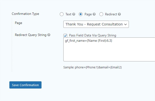 “passed {Name (First):6,3)} to the confirmation page under variable gf_first_name”