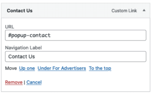 1. Apply Link to Menu or anything you want. In this case, it is #popup-contact