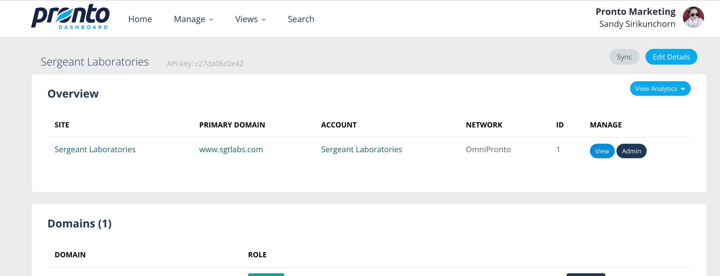 Step to sync site in Pronto Dashboard:
